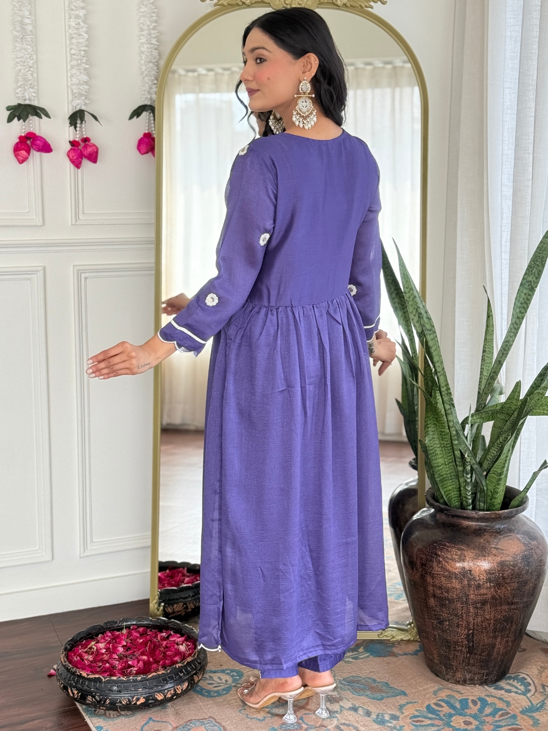 CHITRAM – KURTA SET“If you Love ethnic wear, then this whole Stitched ethnic set is for you” This gorgeous Women’s V Neck Vichitra Silk fabric Embroidery Kurta & Pant with Dupatta Set. “Kurta Details: – The Vichitra Silk fabric V Neck kurta features a Flared shape with 3/4 sleeves Embroidery work on yoke. The Ankle-length kurta is made from high-quality Vichitra Silk fabric making it both comfortable and stylish. The Kurti length is 44 inches.” “Pant Details: – These Solid Vichitra Silk Fabric Pant are partially elasticated at the waistband and feature a slip-on closure for a comfortable and snug fit. The waist size accommodates up to 40 inches, and the Pant length is 37 to 38 inches.” “Dupatta Details: – The set also comes with Embroidery Dupatta made from Organza fabric.” This ethnic set is perfect for festive occasions and is guaranteed to turn heads. Embroidery on the Kurta add a touch of elegance and sophistication to the outfit. Size & Fit: The model in the photo is 5’8″ tall and is wearing a size S. Material & Care: It is recommended to Hand wash it or Dry clean only. Note: There may be slight color variations due to photography lighting and individual screen settings. Add a touch of elegance to your wardrobe and It Can Be Worn To Festive Occasions Or Party, Marriage Occasion Wherever You Want To Flaunt Your Style With This Outfit. Order yours today and enjoy the comfort and style of this timeless ethnic set. |